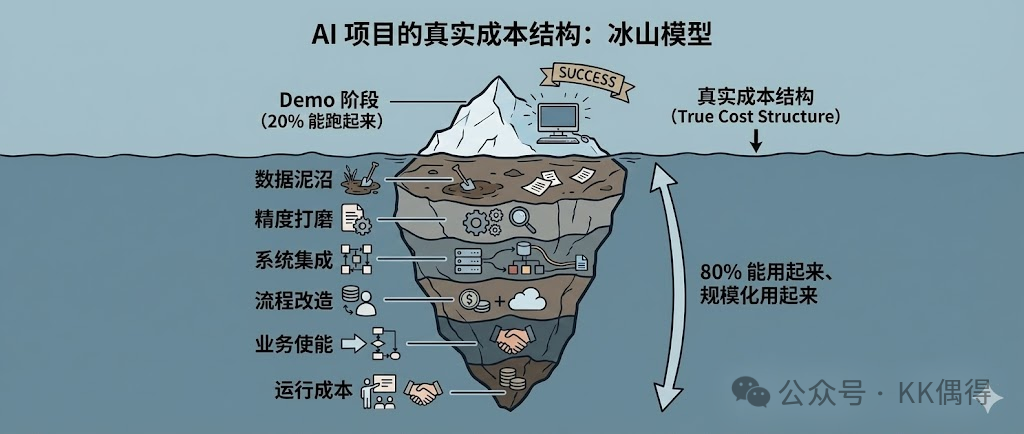 大家逐渐意识到:在企业内落地AI项目要取得业务成功,真挺贵的。正如一位朋友博客总结的: